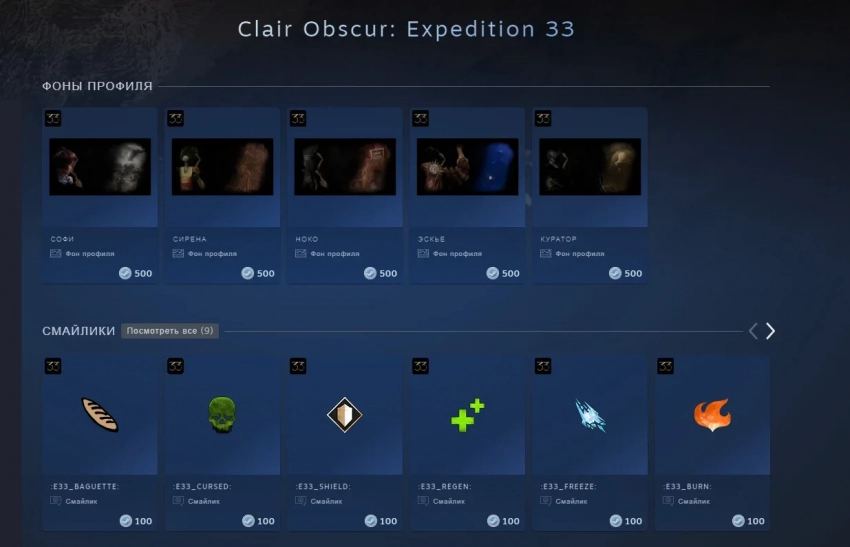 А ещё обновление привнесло с собой тематические предметы Clair Obscur: Expedition 33 в магазин очков Steam. На выбор представлено пять фонов профиля с ключевыми персонажами ролевой игры и девять смайликов. Поклонники также смогут получить карточки за нахождение в игре, чтобы использовать их для продажи на торговой площадке или крафта значка профиля.