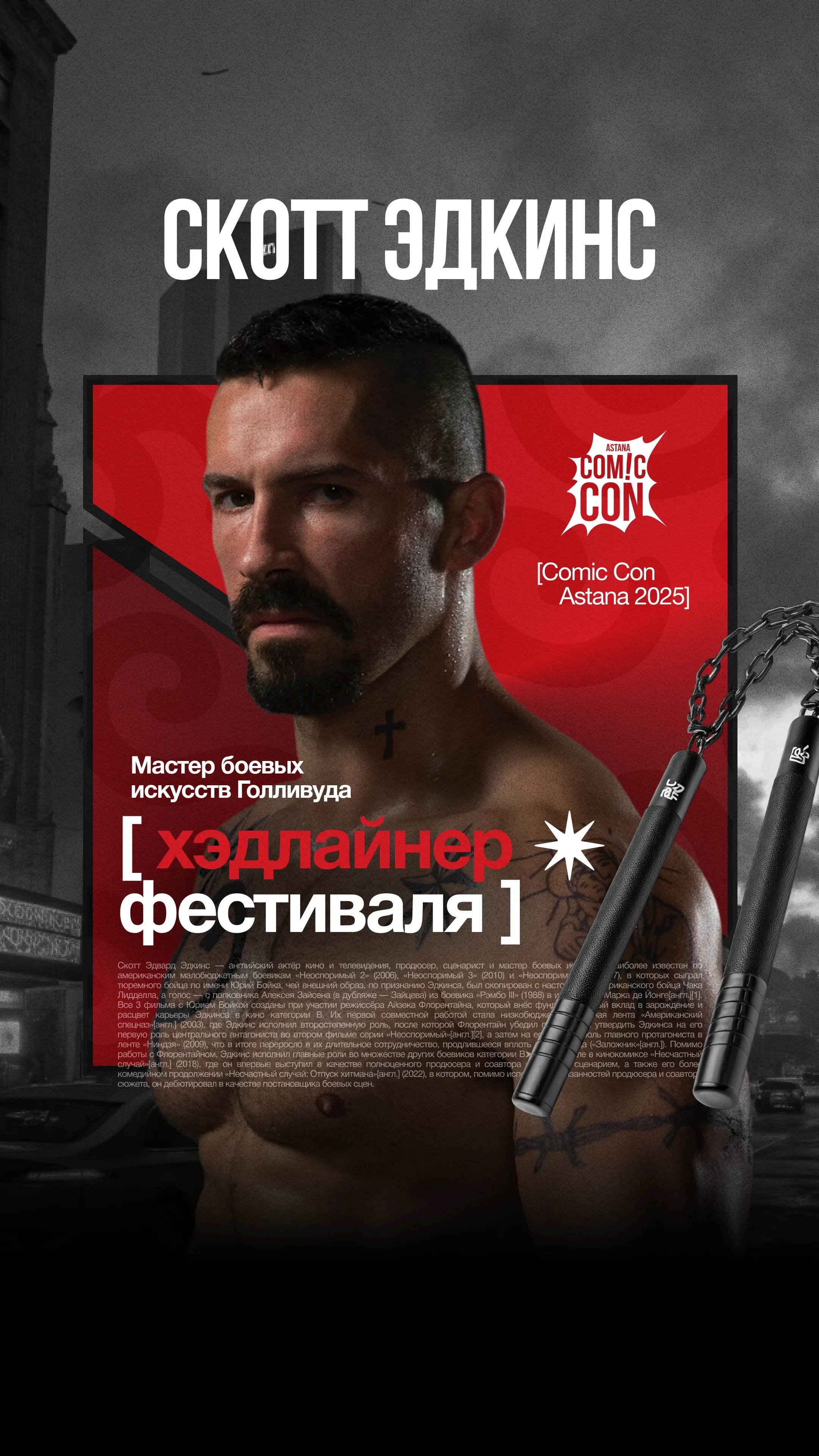 Главные новости » Эксклюзив » Звезда фильмов Marvel и боевика «Джон Уик 4» Скотт Эдкинс приедет на Comic Con Astana 2025