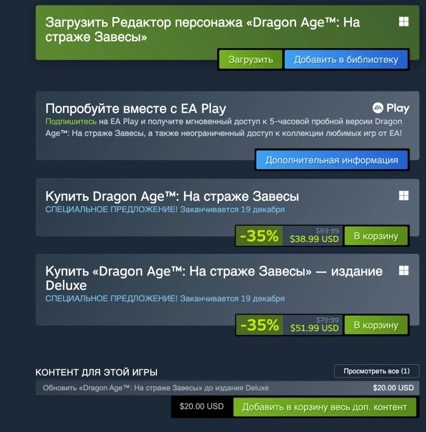 Причём в данном случае речь идёт о снижении цены на 35%, что не выглядит совсем уж скупым предложением со стороны EA. Релиз самого ролевого приключения состоялся чуть больше месяца назад — 31 октября.