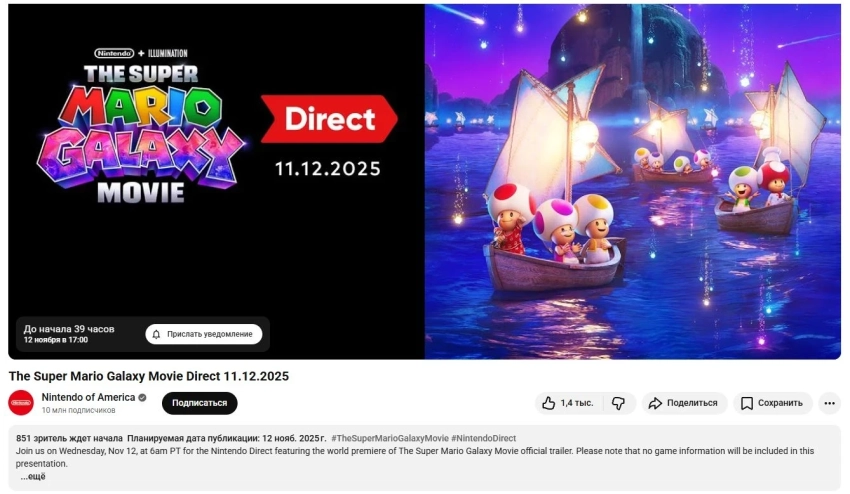 Мы же напомним о том, что анонс The Super Mario Galaxy Movie тоже состоялся в рамках Nintendo Direct. Премьера запланирована на апрель 2026 года.