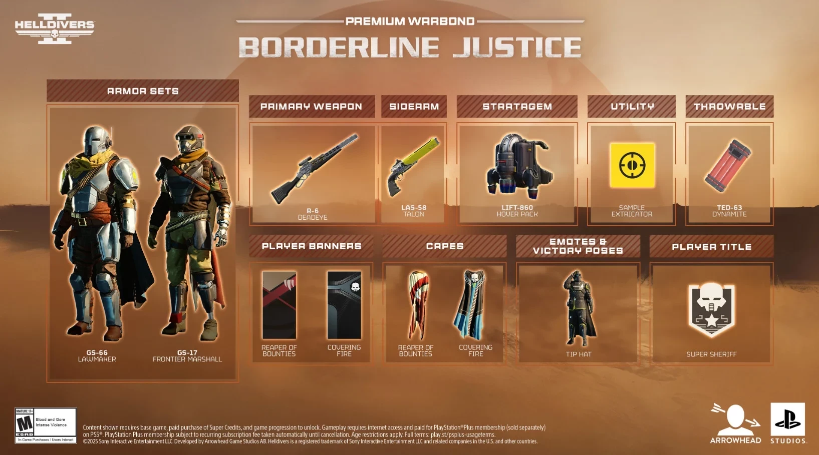 Боевая заслуга отправит игроков в период Дикого Запада. В состав войдут охотничье ружьё и револьвер (конечно же, футуристические), табличка игрока со званием супер-шерифа, тематический жест и не только.