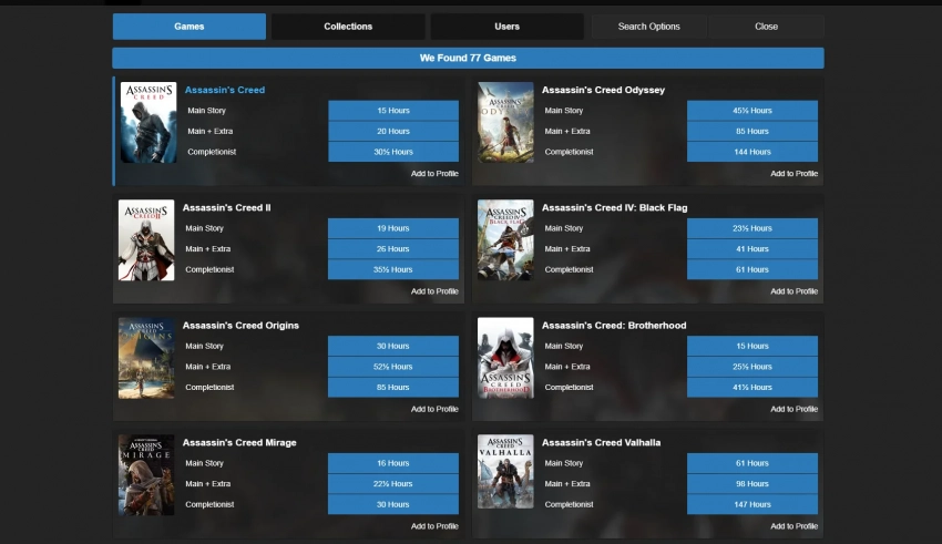 Примечательно, что по данным сайта HowLongToBeat, время прохождения основной сюжетной линии варьируется для каждой из трёх игр. На завершение Assassinʼs Creed Origins потребуется около 30 часов, для Odyssey — 45, а на Valhalla — уже 61 час.