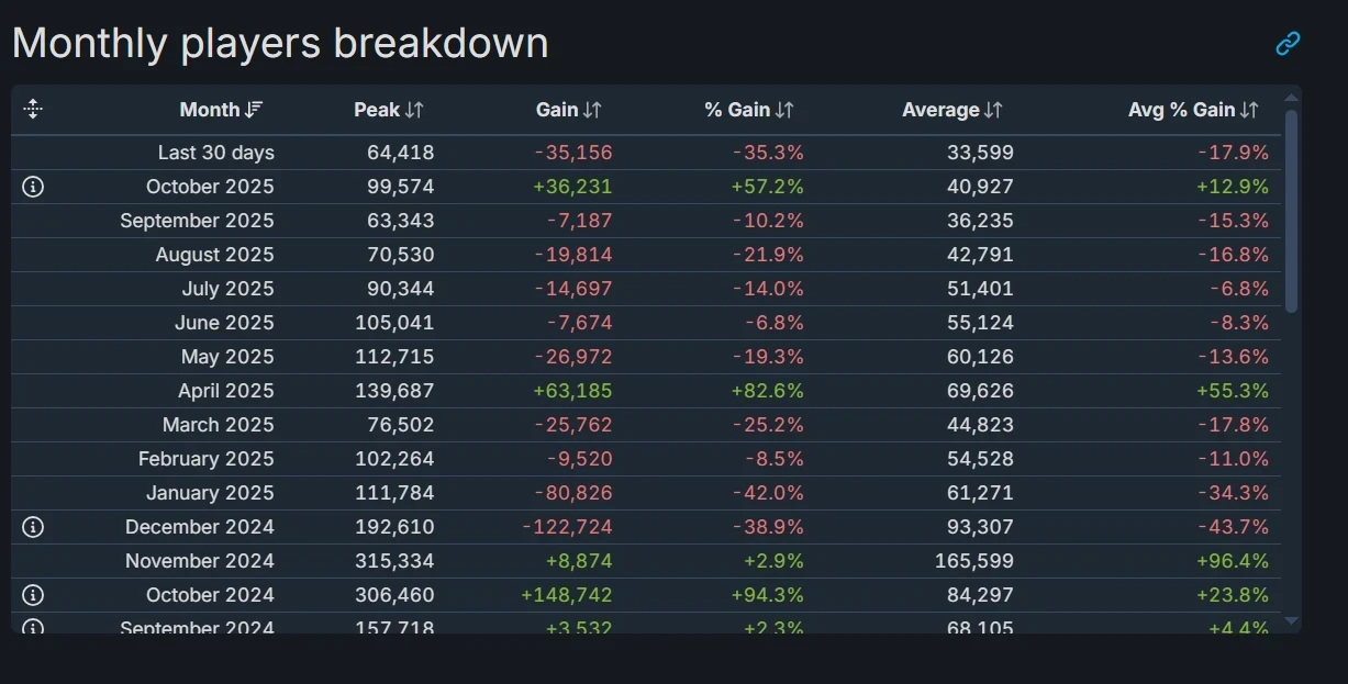 Да и в целом у Call of Duty в Steam не особо всё хорошо с онлайном в последние месяцы. В октябре, напомним, проходили акции с бесплатной игрой в Black Ops 6.
